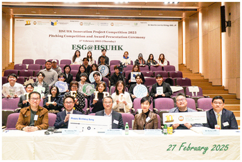 The HSUHK Innovation Project Competition 2025, organised by the Centre for Teaching and Learning, celebrated its 10th anniversary, culminating in a Pitching Competition and Awards Presentation Ceremony on 27 February 2025. This year’s competition focused on the theme “ESG@HSUHK” and featured a series of workshops, seminars, and corporate visits. These events enabled students to understand how companies apply the “Environmental, Social, and Governance (ESG)” framework and implement sustainability practices.