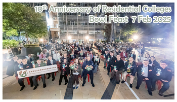 10th Anniversary of Residential Colleges Bowl Feast The President, Vice-Presidents, the Residential Colleges Masters, Warden and his/her team, office heads, along with guests from other Hong Kong universities, pose for a group photo with all participants. (Photo taken on 7 Feb 2025)