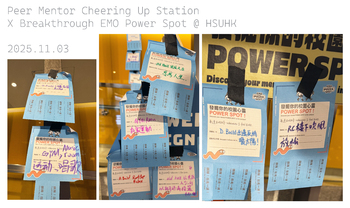 Peer Mentor Cheering Up Station X Breakthrough EMO Power Spot @ HSUHK Students share their mental power spot on the campus. (Photo taken in Nov 2025)
