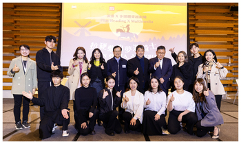 Play Reading X Multimedia Mr Hardy Tsoi (first from left) and HSUHK students reinterpret the renowned musical Man of La Mancha through play reading. (Photo taken on 2 Apr 2025)