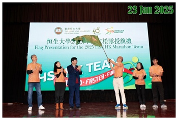 Flag Presentation for the 2025 HSUHK Marathon Team The Flag Presentation Ceremony symbolises encouragement and best wishes to the 2025 HSUHK Team. (Photo taken on 23 Jan 2025)