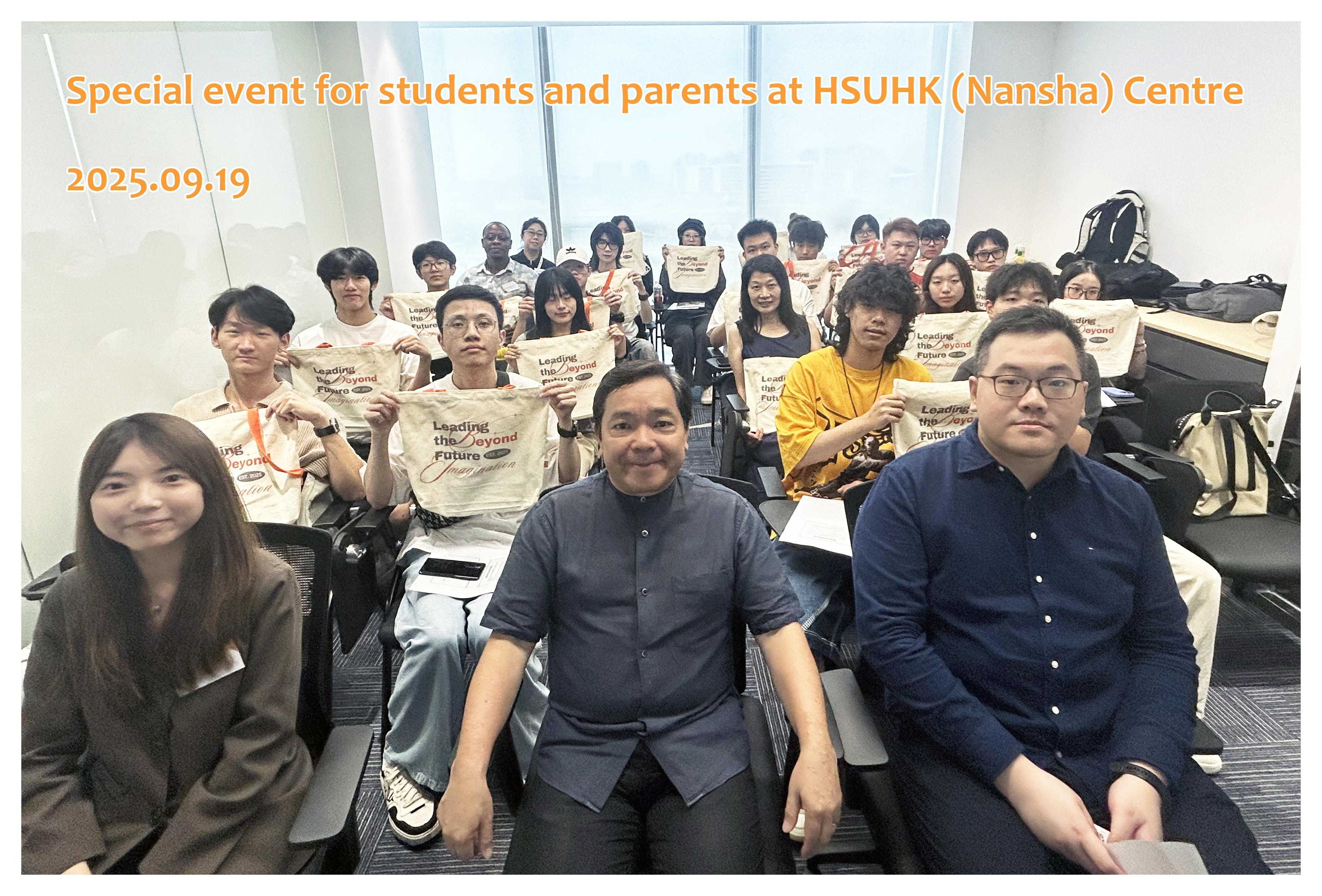 Group photo of the participants at the special event for students and parents at HSUHK (Nansha) Centre (Photo taken on 19 Sep 2025)