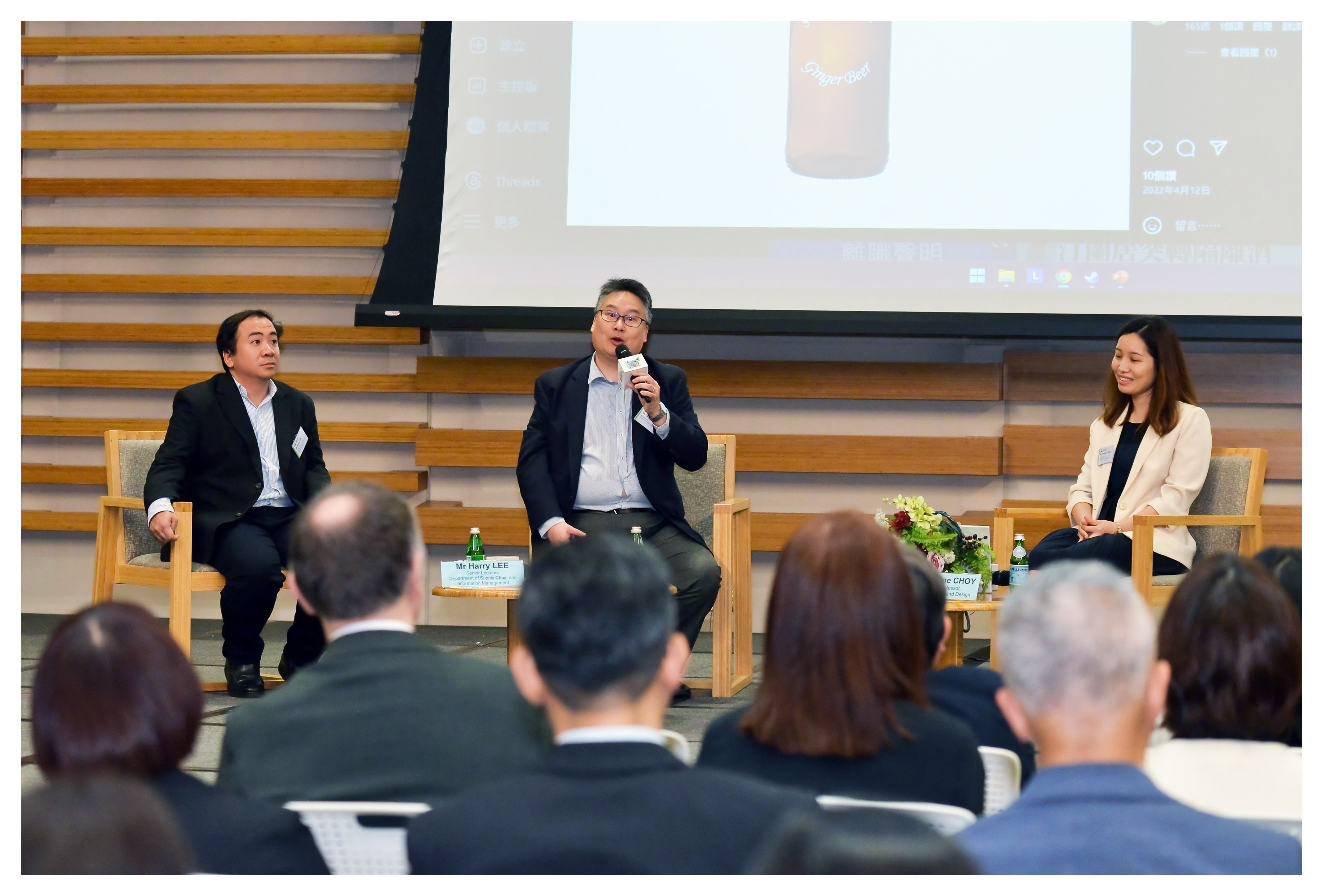 (左起)李偉業先生、林立基先生和蔡曉瑩博士分享他們在教與學應用AI的創新及啟發性見解。圖片攝於2025年6月11日。