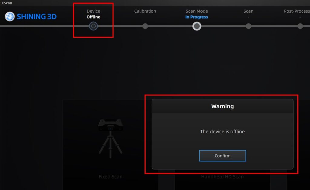 If the status displays “Offline”, ensure all cables are securely connected. If everything is correctly plugged in, try clicking “Refresh” or restart the software.”