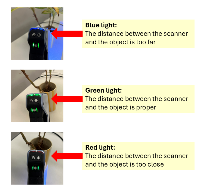 Maintain an appropriate distance between the scanner and the object: