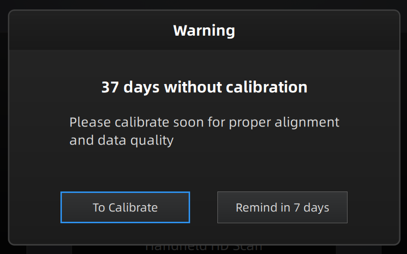 After selecting the scan mode, a calibration warning will appear. Click “Remind in 7 days”.
