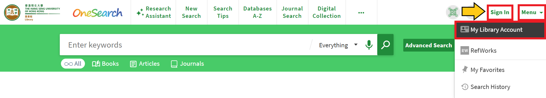 1. Click the Login icon on the Library website (https://library.hsu.edu.hk/)